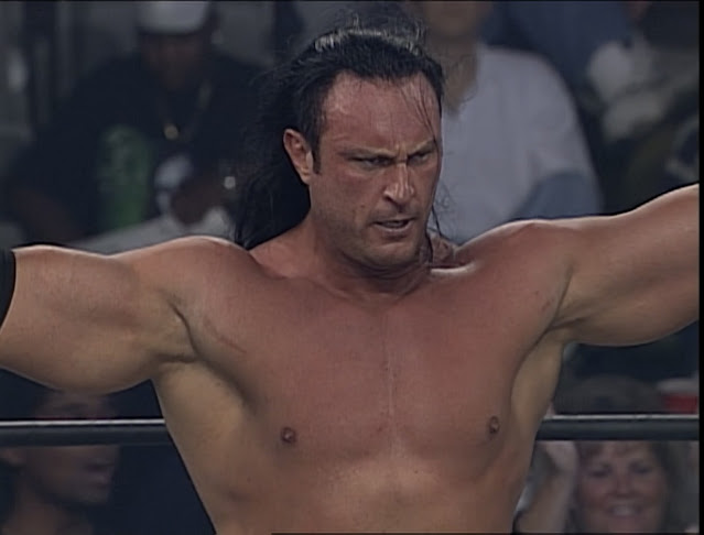 Still, to me at the time, without knowing all this and just going by what's onscreen, that was simply Brian Adams first (and as it appeared, last) fight representing Kiss. But it seems like with each successive appearance, large chunks of his Kiss persona were being chipped away. Brian Adams would appear one more time on WCW Thunder ten days later in newly designed, non-Kiss related pants, and back to his pre-Kiss feud with nWo, fighting Horace Hogan. Only the boots from his Kiss character remained, the last remnant of the original Kiss Demon on him.